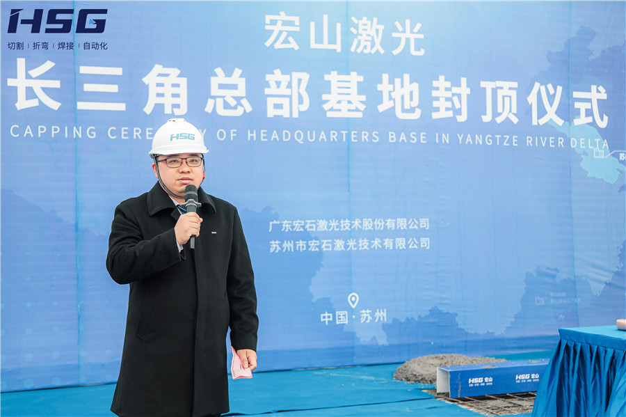在聽取基地建設(shè)進(jìn)度匯報(bào)后,宏山激光董事俞宏標(biāo)先生為此次活動(dòng)發(fā)表致辭,俞總對多方施工單位表達(dá)了感謝,并表示:長三角總部基地的建設(shè),是宏山激光國內(nèi)乃至全球布局發(fā)展的重要一環(huán),是宏山激光增資擴(kuò)產(chǎn)、擴(kuò)大企業(yè)實(shí)力、完善戰(zhàn)略布局的重要步驟。未來,長三角總部基地將扎根蘇州,面向華東、華北地區(qū),為用戶提供“家門口”的激光智能裝備服務(wù)。
